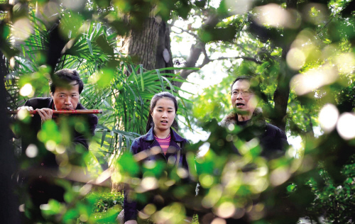 阳光真好。11月18日,在嘉兴海盐县绮园风景区内,来自上海田笙曲社和海盐腔民间艺术团倚晴楼曲社的昆曲爱好者正在举办昆曲雅集。
