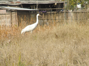 “它是(11月)16号飞来的!”在藕田边干活的郑大伯回忆道,那天上午,他在田里的草棚休息,无意间看到藕田里有一只一米多高的白色大鸟,嘴有几十厘米长,不时啄进烂泥地里,叼出底下的莲藕,郑大伯开始以为是天鹅,但发现这只鸟的脖子和脚很细长,天鹅没这么瘦。