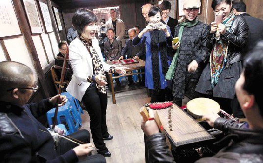 11月23日,温州龙湾区30多位书画家、鼓词老艺人、非遗传人以“宣传党的十八大精神”为题,各显特长,进行文艺创作。