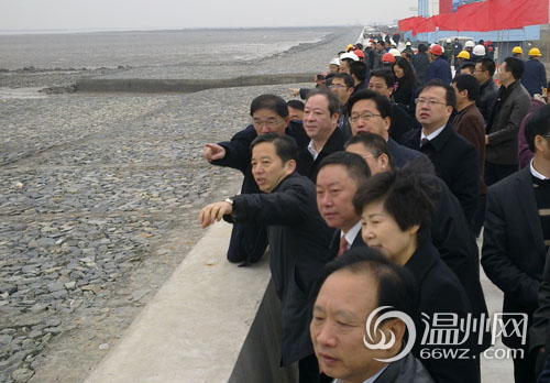 当天开工的一期工程,位于瓯江、飞云江河口间平直岸滩,围垦面积13.28万亩,堤线总长约36.6公里,工期8.5年。工程立足于防御超强风暴潮的基本功能,围垦建设与交通道路、港口相结合,是一项集防洪、农业、渔业、生态、港口等为一体的多功能综合性工程,也是浙江省推进海洋资源综合开发的一项标志性工程。