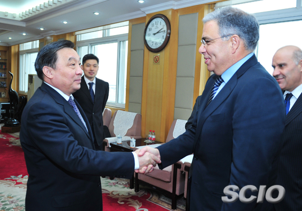 王晨在京会见来访的黎巴嫩新闻部长瓦利德•达欧格(郭研摄影)