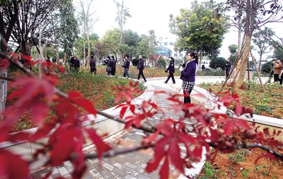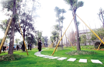 | 星月广场二期树木搭配错落有致,且利用地形条件制造了几个坡度,是昨天绿地建设现场会的一个样板。 陈翔 摄 |