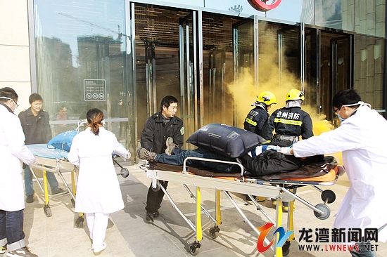 这是12月19日龙湾区2012应急演练现场紧急救援和处置的一幕。