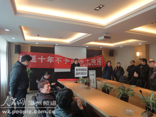 根据辖区功能调整,今年年初,时代华庭项目被移交给龙湾区国土局管理。“等了快十年了,再也不能再等了。”在广大业主的催促下,昨天下午,时代华庭的100多位业主,把大地房开的相关负责人“邀请”到了龙湾国土局。