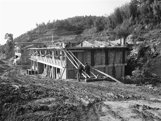 于是,从去年开始,盖新房一事被提上了日程。然而,要在陡峭的山路上建新房谈何容易,首先要将高低不平的山坎扩大路面,填平基面,还要建造百米长的石头驳坎墙。经过半年多施工,现已筑好。
