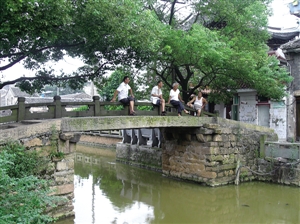 永中沧水桥上,老人们趣谈早年俚语 徐洪迪 摄