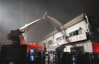 消防队员赶到现场后,组成多个攻坚组,深入厂房车间灭火,还对车间的窗户实施破拆,开辟灭火通道。同时在失火厂房上空喷水冷却降温,防止因钢结构车间长时间燃烧而发生坍塌。由于消火栓水压很低,消防队员只能通过大功率消防车远距离供水,并到附近河流取水,以缓解灭火用水的紧缺状况。据现场初步勘查,车间建筑总面积2400平方米,过火面积约200平方米。