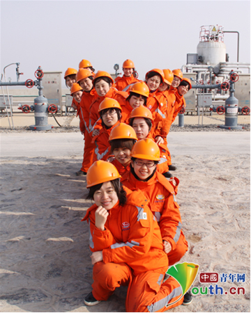 胜利油田胜海管理区采油一队0#海油陆采女子班。胜利石油管理局团委供图