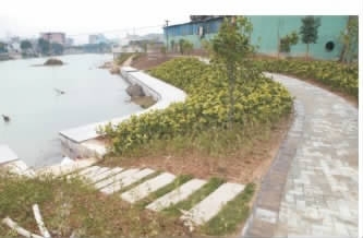 该工程位于永中街道双岙村至坦头村南侧河岸,需建设河岸绿化2.2万㎡,生态护岸1990m,绿化率达85%,工程总概算1100万元,工程于2011年底完成招投标,中标金额917万元,工期180天。