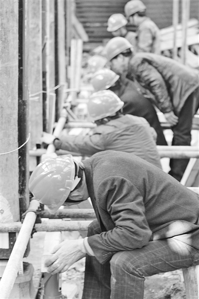 四十多位工作人员人手一台千斤顶,步调一致,一厘米一厘米稳稳完成顶升提高工作。叶晓东摄
