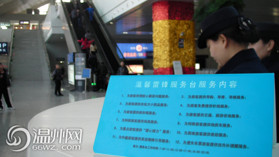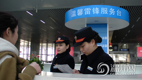 “是的,这边上去。”弯腰、微笑,伸手引导。1月25日,在春运的前一天,温州南动车站的大厅里,一个温馨服务台前,几位女值班员的热情引导,吸引了不少人的目光。