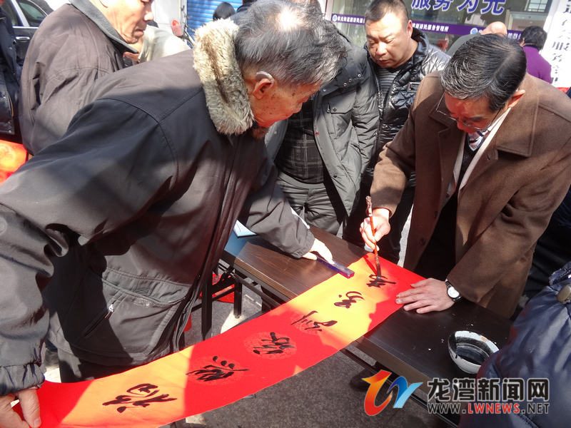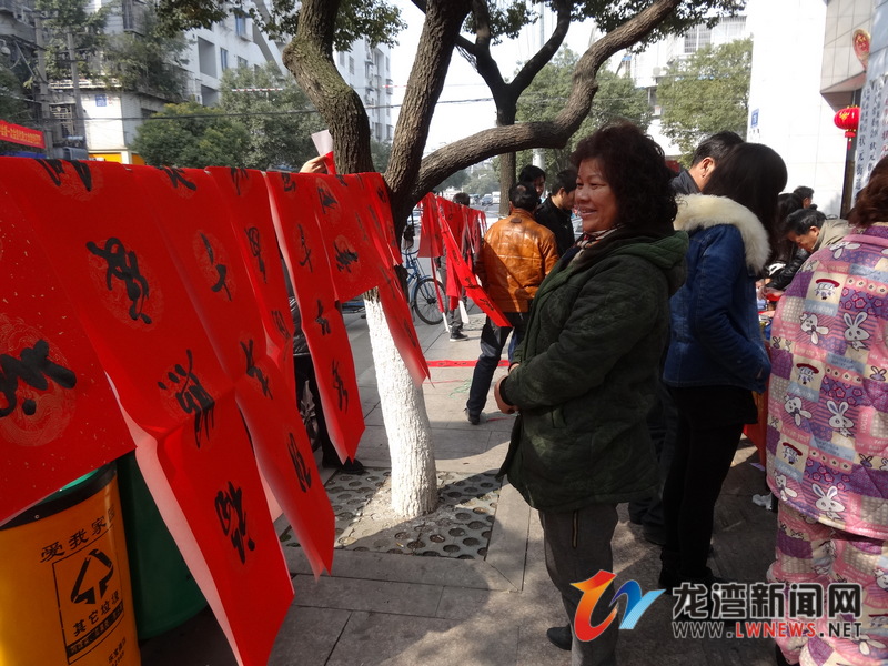 1月23日,在龙湾区龙飞路78号状元街道便民服务中心前,姜松林、戴昌林、陈志海3位党员书法家泼墨挥毫,为市民送上特殊“年货”——飘着墨香的春联。