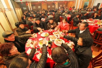 12月25日,“爱心龙湾·慈善嘉年华”———迎春慈善宴在温州文化用品市场热闹开席,包括区本级困难群众、新居民、爱心企业及爱心人士代表等250多人齐聚一堂,共享爱心大餐。据了解,我区已连续举办8年的慈善大宴活动。慈善宴上,慈善总会还给每人分发慰问金和慰问品。叶康远秦鸿桂寅摄
