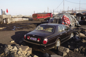 “自救”无果,投诉也无门。1月20日,戏剧性的一幕出现了——一辆价值550万元的宾利车突然出现在公司前面一条泥土路拐弯的一端,横着堵住了路口。原来这条窄小的泥土路是运煤车通往煤场的必经之路,这辆宾利车的“任务”,就是用自身“精贵的身躯”把这条路牢牢守住。