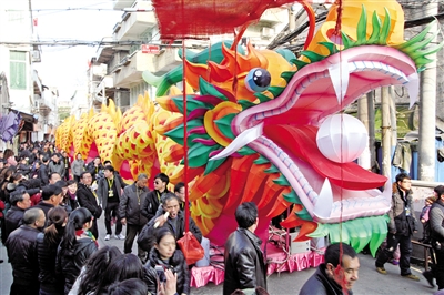 送龙年迎蛇年,但对于以龙为图腾的中华民族来说,对龙的崇拜和喜爱,却很难被年历的更替所改变。在龙湾,中断68年之久的“龙灯巡游”即将在蛇年正月初三登场。近日,该地对巡游活动进行了最后一次实物彩排,长达88.88米、宽2.5米、高4米的巨型龙灯,成为本次最大的亮点。