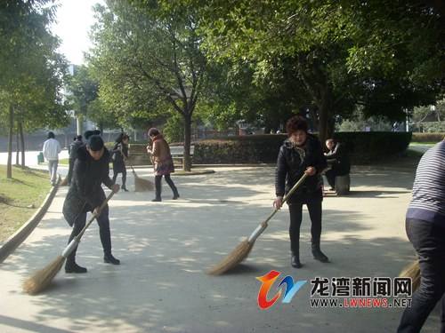 在状元文化公园里,大家干劲十足,忙着捡拾垃圾、清理小广告,对那些“躲藏”在角落里的垃圾也不放过,个个忙得汗流满面。对于有些地方扫把扫不出来的,有些志愿者们都直接用手去拉,他们说年底了一定要弄得干干净净过新年。还有些志愿者拉来草皮,把公园内假山上暴露的地方重新铺上草皮,洒上水,使得整个小山坡显得更加有生机。