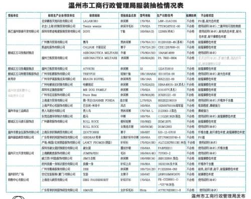 温州市工商局发布服装质量抽检结果 近4成不合格