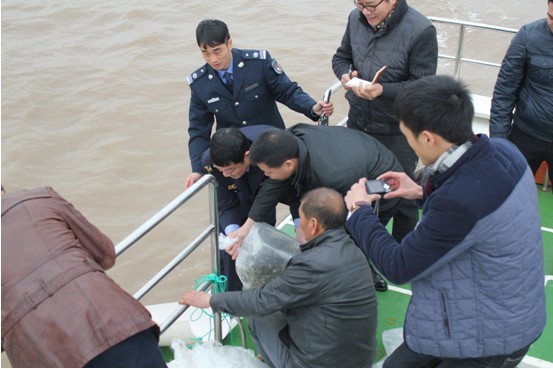 温州龙湾局组织鲈鱼苗增殖放流活动