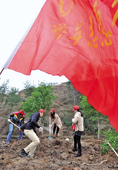 昨天,文成县一批青年志愿者参与义务植树活动,为“美丽乡村”添新绿。雷忠义摄