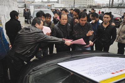 一企业在劳务市场外招工。晓春摄