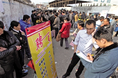 温州网讯 昨天下午,温州市区牛山劳务市场一角。据市场工作人员介绍,今年求职者较往年少了不少,估计要等正月初十之后,进场的务工人员与用工单位才会逐天攀升,正月十五后将迎来求职高峰。苏巧将摄