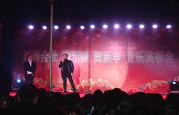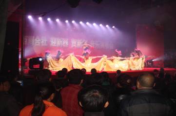 龙湾新闻网讯 2013年新春佳节,为了给社区村民增加一些喜庆气氛,同时也为了促进社区的安定与祥和。永中街道万和社区联谊村西周合社邀请温州市歌舞团于2013年2月21日晚上在西周宗祠道坦举行了2013年西周合社迎新春贺新年音乐演唱会活动,联谊村书记郑建光向前来观看演出村民和来宾表示热烈欢迎和真挚的祝福。