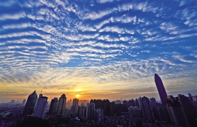 2013年的第一天,天气出奇的好。上午6:52,温州迎来新年第一缕阳光,一轮金灿灿的太阳在漫天的祥云烘托下冉冉升起,似乎预示着温州将迎来一个崭新的祥和之年。本报资料照片杨冰杰摄
