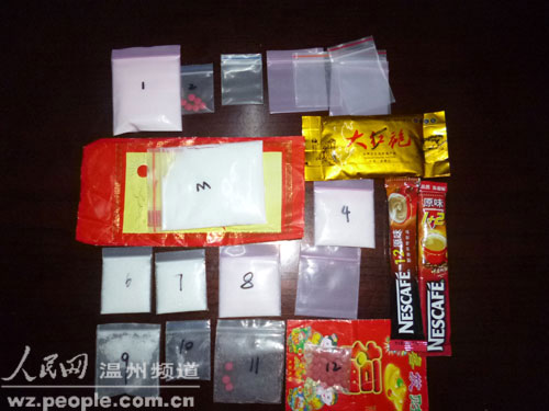 人民网温州2月28日电 (通讯员 毕健敏 杨继划)“这是龙湾警方近年来一次性打击毒品品种最多、最全、最大的贩卖毒品案件。”温州龙湾警方相关负责人,指着面前的超市里随处可见的一袋袋包装果珍、大红袍、雀巢咖啡介绍道。原来,里面的东西早已被毒贩偷梁换柱。