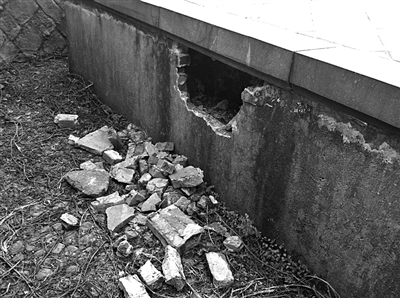 昨日下午5时许,本报记者赶到现场,只见孙诒让的墓后被人用工具挖出一个1平方米大小的洞穴,小洞穴直接通到墓室,被挖掉的砖石散落一地。