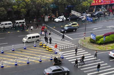 过境公路的人行道上,两边各站着3名交通协警在指挥交通。整个上午,景山花鸟市场门口通往三维桥的过境公路该路段,没再发生塞车拥堵现象,一路通畅。