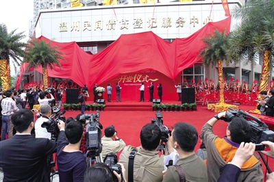 去年4月下旬,温州金改获批不到一个月,温州民间借贷登记服务中心就揭开“红盖头”,挂牌试营业。这标志着温州民间借贷的阳光化规范化进程迈出坚实步伐。苏巧将摄本报资料照片
