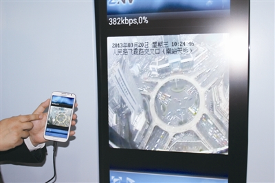 记者通过wifi网络点击“人民路南站监控点”,通过手机视频播放器,该监控点的实时监控画面传到了手机上,川流不息的汽车一目了然。