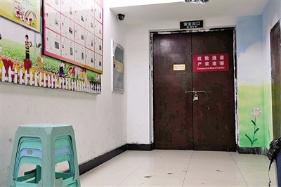 三点半左右,陆续有学生来到培训中心,准备吃点心、写作业。厨房里一名工作人员开始张罗晚饭,油烟略略有些呛鼻。记者离开时,看到一标有“安全出口”的大门被一把铁锁锁上,而门上还贴有“疏散通道严禁堵塞”的字条。