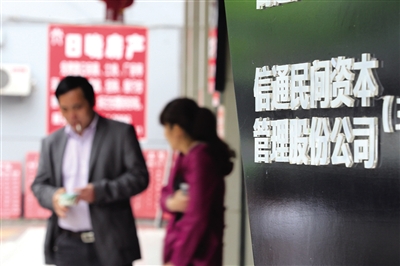 在一融资中介办公室内,有闲钱近30万元的周阿婆和急需为企业融资10万元的金先生在中介机构的“撮合”下洽谈民间借贷生意。