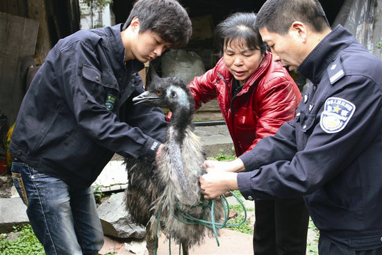 事后,有一名男子联系上“绿眼睛”,自称是某流动马戏团的负责人,这只鸸鹋是他们走失的表演动物。当“绿眼睛”工作人员表示可凭林业部门颁发的饲养证件前来认领时,该男子一直没出现。“绿眼睛”工作人员称,如果没有人来认领,他们将收养这只鸸鹋。见习记者谢树华