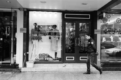 与“美卡丹”隔几间店面的是“小博士童装”,店里的王女士分析,这几年生意不好做,主要是这条路上的人气没以前旺了。为证实王女士的说法,记者特意于昨天上午10点-11点守候在该街一处,发现两边行人确实较少,购物的则更少。