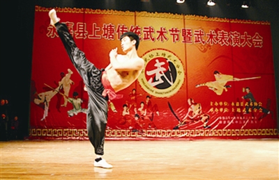 今年上塘物资交流会加入了戏曲武术表演。林琦摄