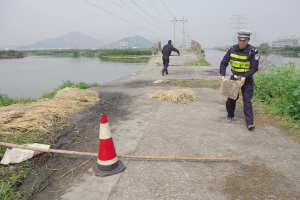 据了解,相关部门原在桥头砌了一堵墙防止行人和车辆上桥,但不少人在这里钓鱼,渐渐地,墙就被破坏了。我们还能看到墙的痕迹,但已经被破坏殆尽了。