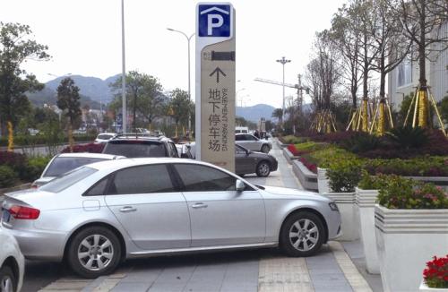 而在万达广场1号门前的斑马线上,一辆本田轿车压着斑马线停放。当记者对他说如此停车属违法时,车主笑呵呵道:“知道,知道,实在没地方停,很快就走。”当记者问他为何不选择停地下车库时,他说:“下去后要绕来绕去,太麻烦了。”