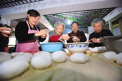 昨日上午,在龙湾区蒲州街道新蒲江社区居家养老服务照料中心,老人志愿者和社区工作人员一起制作清明饼,一个上午他们共做了180多个清明饼,蒸好后送给该社区居民免费品尝。 刘伟 王策 摄