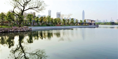 改建前的市区划龙桥路庄头一带是典型的城中村。一年之后的今天,庄头已经变成美丽的滨水公园。杨冰杰摄