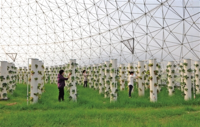 现代农业正成为温商回乡投资的新热点。图为在外苍南人陈忠何在家乡观美桃湖村投资开发的现代农业园,里面涉及建筑工程、环境控制、机械传动、材料科学等多个学科。李士明摄