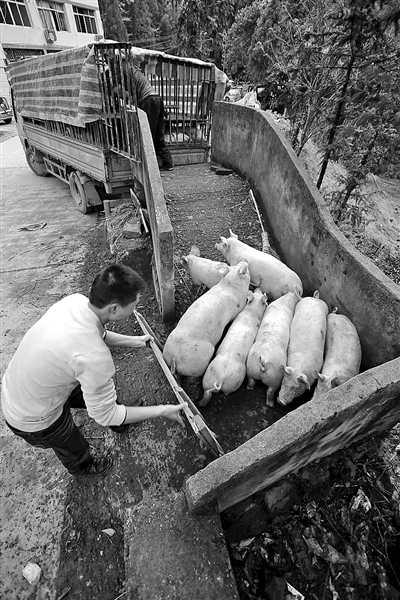 养殖场即将被拆掉,一农户卖掉最后的几头小猪仔。刘伟摄