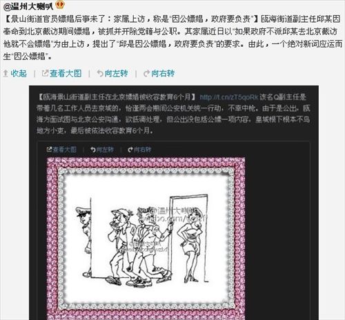 为此,记者联系到了瓯海区信访局副局长蔡美雄。蔡局长表示,到目前为止没有接到网上所传的邱某家属的上访,网上的消息可能不实。同时,他认为“因公嫖娼”的说法非常可笑。
