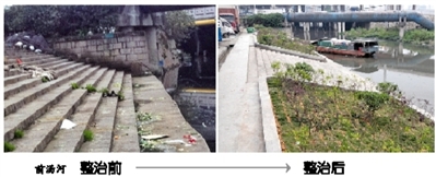 站在金光河边,人们难以将其同2个月前微博悬赏的那条垃圾河联系在一起。金光河周边人口密集,当时的微博照片里,河岸两侧满是违建,河道内都是生活垃圾。
