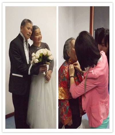 龙湾新闻网讯 “靠近一点,笑一笑,不要紧张,对,头再稍微向左转一点“,穿上礼服,画上美妆,摄影师正仔细地为金婚老人拍摄婚纱照。你一定猜不出来这是黄石山社区养老服务中心的志愿者们为老人们提供爱心服务。