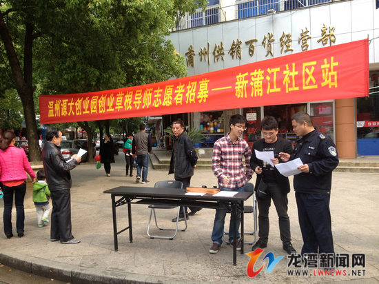 本次创业草根导师招募将持续到5月10日,采用现场报名+社区报名两种形式,为有创业激情的人才成就其创业梦想,提升其富裕程度和幸福指数。同时,新蒲江社区与温州源大创业园达成了初步合作协议,今后创业草根导师志愿者将不定期深入社区开展志愿服务,通过合作活动,实现资源共享,既为创业草根导师志愿者提供了一个锻炼的平台,又为社区解决了缺乏志愿者的局面。