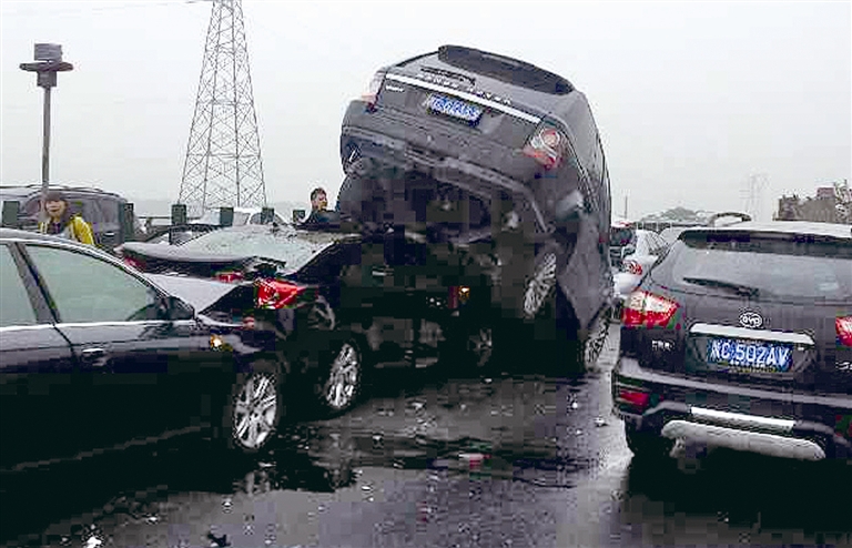G15沈海高速多车追尾 路虎“骑虎难下”