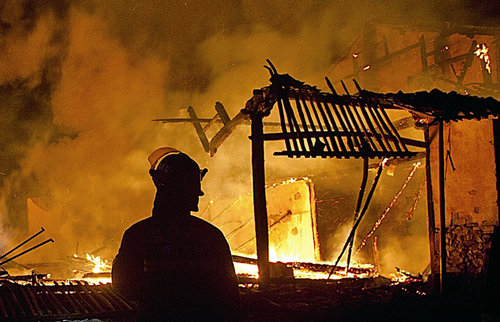事发时,民房内有一对老人从屋内逃出,身体没有大碍。随后,藤桥镇临江专职消防队的一辆消防车最先赶到现场。“火越烧越猛,水枪没喷多长时间就没水了。”火场周围的村民对此议论纷纷。现场目击者彭先生当时正好拿着一台数码相机,拍下了14张现场照片。据彭先生说,这些照片拍的是水枪断水后一直到水枪重新出水瞬间的场景。