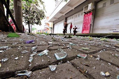 小区到处都是玻璃碎片。杨冰杰摄